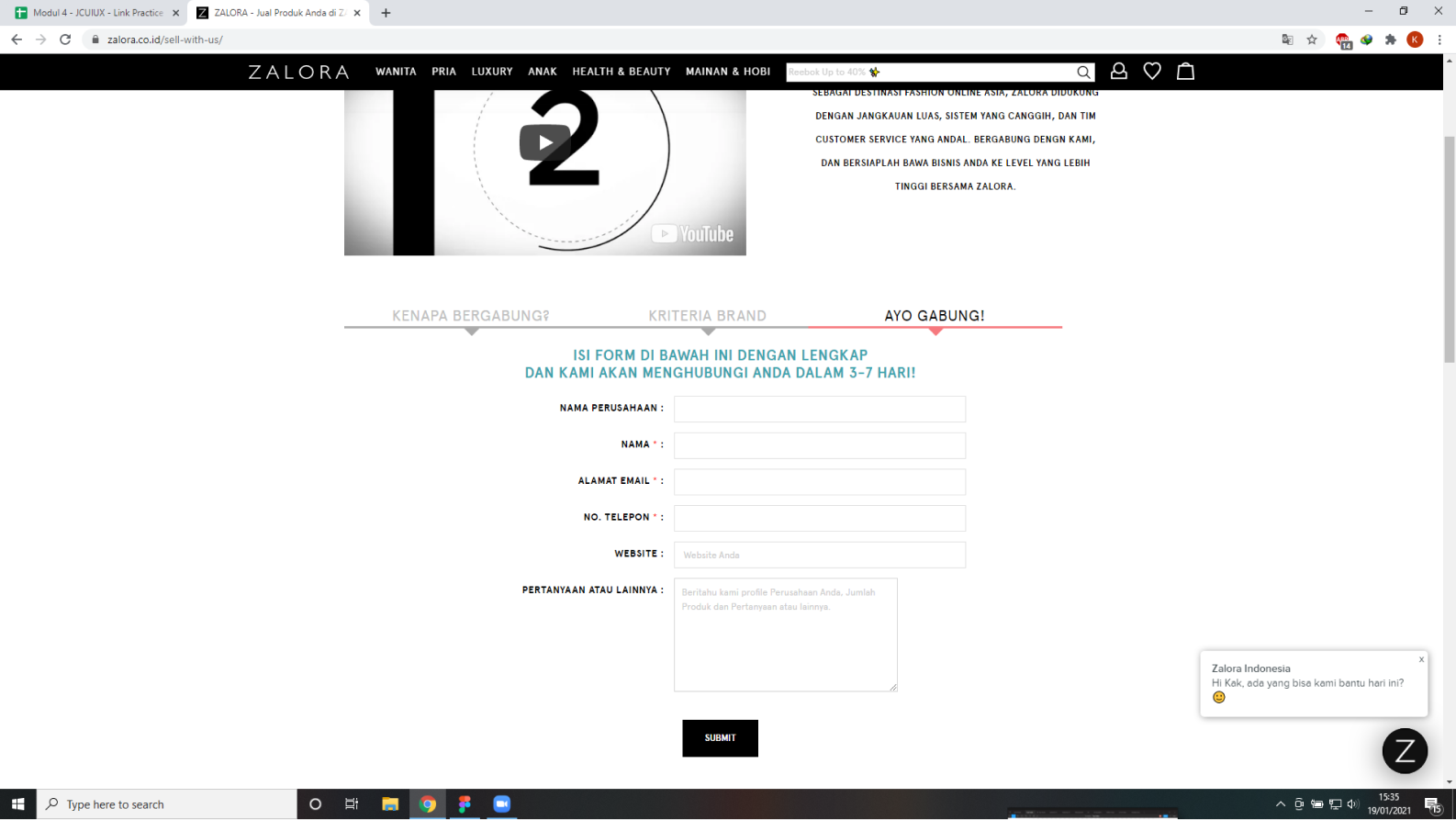 Users could register directly by tapping the Yes button and then be redirected to a shop registration form page. They can fill in their shop identity, brand information, and sales experience, which I provided loosely based on Zalora Indonesia registration terms. I created which form is required and optional to be filled.